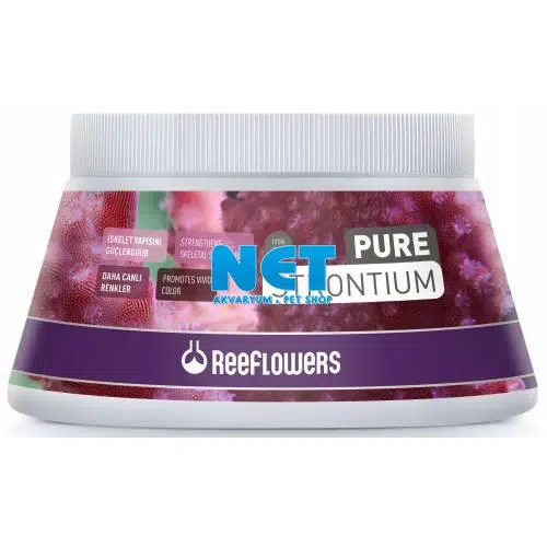 ReeFlowers Pure Strontium, yüksek saflıkta stronsiyum içerir. Stronsiyum, mercan, balık ve omurgasız canlı iskeletlerinde bulunur. Mercan iskeletinin yaklaşık %1'ini oluşturur. ReeFlowers Pure Strontium, 1 kg'da en az 500.000 ppm stronsiyum içerir. Stronsiyum, diğer iyonları inorganik çökelti haline getirerek iskelet oluşumunu, dolayısıyla büyümeyi sağlar, güçlü bağ yapısı sayesinde iskeleti sağlamlaştırır. Eksikliği renklerde matlaşma ve iskelet yapısında zayıflamaya sebep olur.