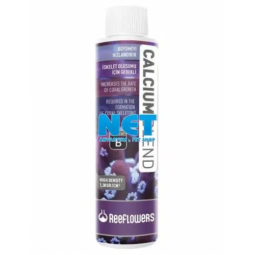 ReeFlowers Calcium Blend, yüksek yoğunlukta iyonik kalsiyum çözeltisidir. Mercan, istiridye ve benzeri canlıların iskelet oluşumu için gereklidir. ReeFlowers Calcium Blend, 1 lt’de en az 150.000 ppm kalsiyum içerir.