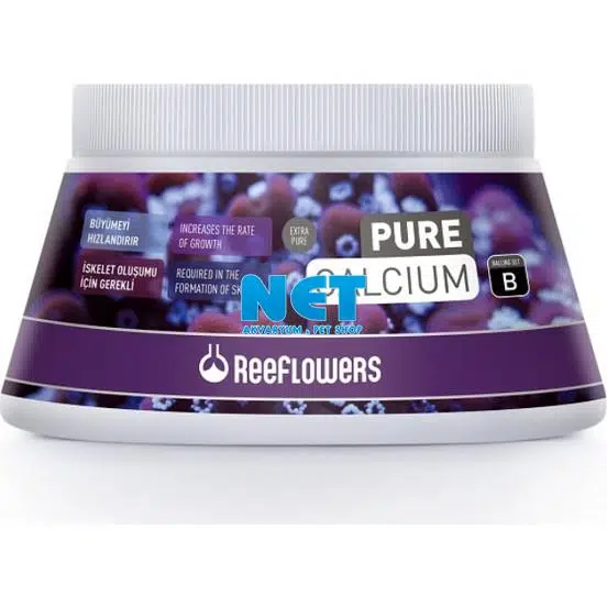 ReeFlowers Pure Calcium, yüksek saflıkta kalsiyum içerir. Kalsiyum, mercan, istiridye ve benzeri canlıların iskelet oluşumu için gereklidir. 1 kg'da en az 300.000 ppm kalsiyum içerir. Resif akvaryumunda kalsiyumun 440- 460 ppm aralığında olması, diğer fiziksel ve kimyasal gereklilikler sağlandığında mercanlar ve diğer iskelet yapısına sahip canlıların hızla büyümesini sağlar.
