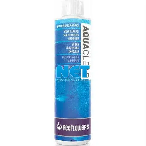 Suda serbest olarak yüzen küçük parçacıklar suyun bulanık görünmesine sebep olur. ReeFlowers AquaClear, suda bulanıklığa sebep olan bu küçük parçacıkları bağlayarak topaklanmalarını ve filtre ekipmanları tarafından kolayca tutulmalarını sağlayarak suyu berraklaştırır ve temizlenmesini sağlar. Suyu zararlı etkenlerden arındırır. Yosun oluşumunu engellemeye yardımcı olur.
