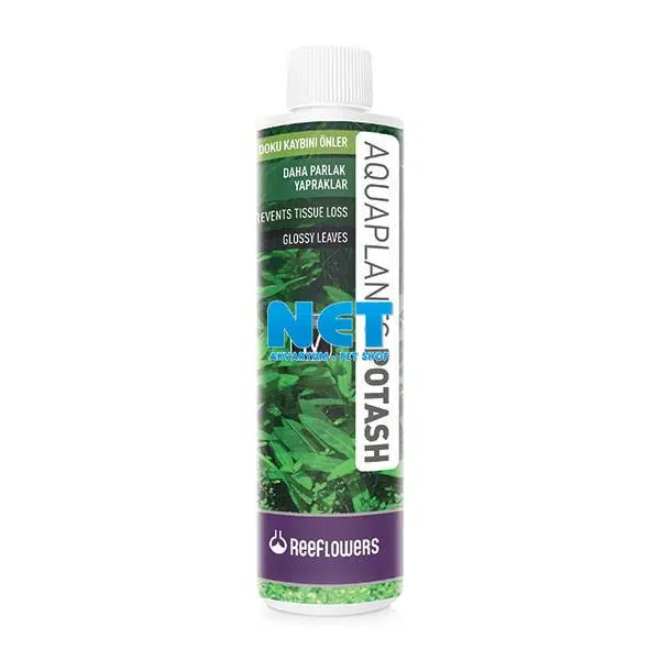 ReeFlowers AquaPlants Potash, yüksek yoğunlukta potasyum çözeltisidir. Bitkili akvaryumlar için özel olarak formüle edilmiştir. 1 lt’de en az 40.000 ppm potasyum içerir. Potasyum bitki gelişimi ve sağlığı için en önemli elementlerdendir. Fotosentezde kullanılır ve bitki dokularında gerçekleşen birçok biyokimyasal reaksiyon için oldukça önemlidir.