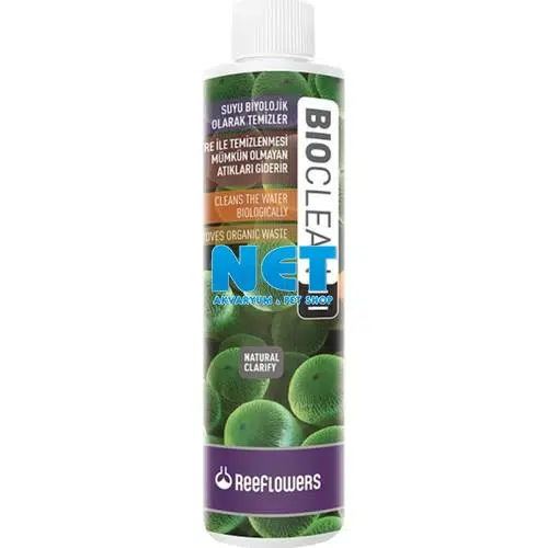 Ürün Adı: Reeflowers BioClean III 250 ml. Skt:06/2027 Su Temizleyici Tatlı ve Tuzlu akvaryumları için Suyu Biyolojik Olarak Temizler Su Temizleyici Tatlı ve Tuzlu akvaryumları için Suyu Biyolojik Olarak Temizler