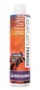 ReeFlowers AquaPlants Ferrous, bitkili akvaryumlar için özel olarak formüle edilmiş sıvı karbon kaynağı içeren yüksek yoğunlukta şelatlı bir demir çözeltisidir.