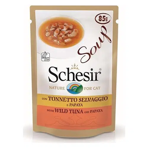 Ürün Adı: Schesir Ton Balıklı ve Papayalı Tahılsız Yetişkin Kedi Çorbası 85gr Skt: 07/2025 Kedi Çorbası 85gr Skt: 07/2025