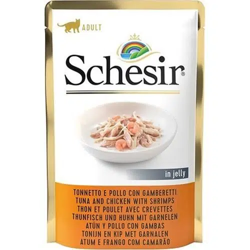 Schesir Pouch Ton Balıklı&Tavuklu ve Karidesli Jöleli Kedi Yaş Maması 85 Gr
