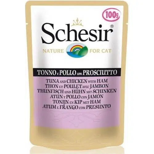 Ürün Adı: Schesir Tavuklu Jambonlu Pouch Kedi Konservesi 100 gr Skt: 01/2026 gr Skt: 01/2026
