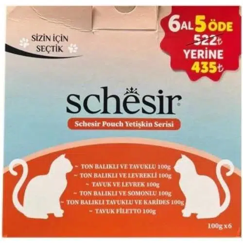 Ürün Adı: Schesir Deniz Mahsulleri Serisi Yetişkin Kedi Konservesi 100gr (6 AL 5 ÖDE) Skt :11/2024 Konservesi 100gr (6 AL 5 ÖDE) Skt :11/2024