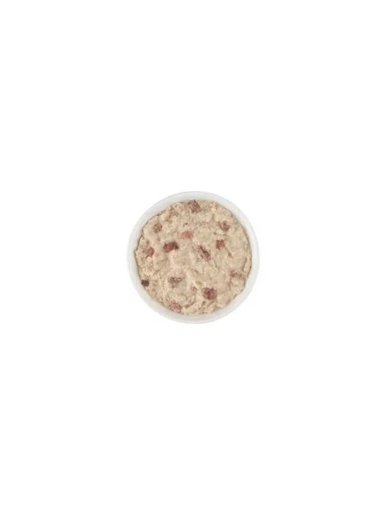 Gerçek tavuklu, lezzetli ve besleyici kalp, karaciğer ve taşlık parçaları ile birlikte protein dolu bir ezme.