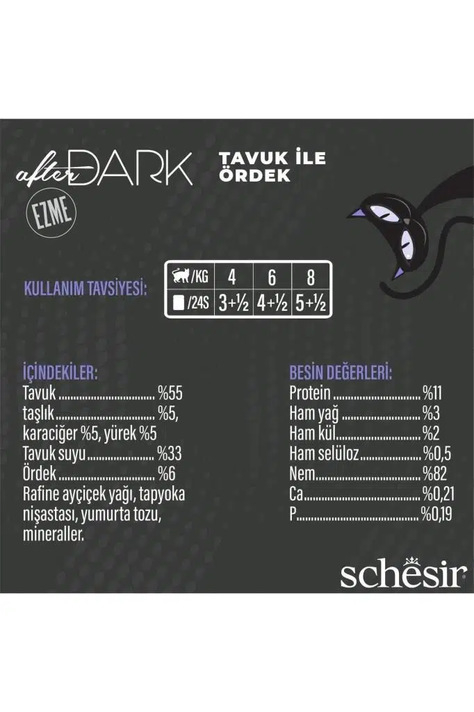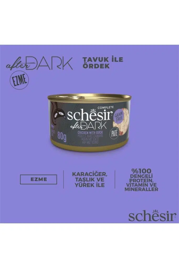 Ürün Adı: SchesirAfter Dark Tavuk ile Ördek Pate Yetişkin Kedi Konservesi 80g Skt:12/2026 Kedi Konservesi 80g Skt:12/2026