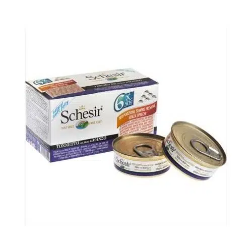 % 100 doğal içerikli Schesir kalitesi de, her biri 6 ila 50 g teneke kutuya sahip, genellikle küçük dozlarda farklı çeşitleri tatmaktan hoşlanan kediler için çoklu ambalaj formatındadır. Kompozisyon: ton balığı 52%, sığır filetosu 6%, pirinç 1.5% Besin Katkıları / Kg: Vit. A1325 I.U., Vit. E 15 mg, Taurin 160 mg Analitik bileşenler: protein% 12, ham yağlar ve yağlar% 1.5, ham elyaflar% 0.5, ham kül% 1, nem% 85, 82.6 kcal / 100 g