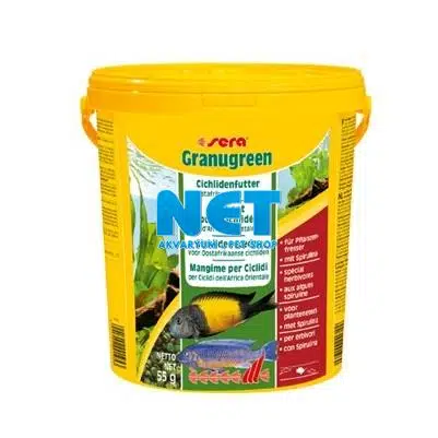 Sera Granugreen, aslen bitkileri ve perifiton yiyen daha küçük çikletler için özenle üretilmiş granüllerden oluşan temel yemdir. Buna çoğu Doğu Afrika çiklet türü de dahildir. Spirulina algi ve doğal karotenoidlerin yüksek yüzdede bulunduğu ıspanak gibi yüksek kalite bitkisel bileşenler ideal renk gelişimini destekler. Dengelenmiş bileşen güçlü gelişim ve sağlıklı sindirimi destekler. Yavaş yavaş batan granül şeklini oldukça iyi korur ve suyu kirletmez.
