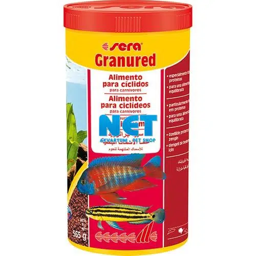 Sera Granured, tüm etobur çiklet türleri için özel olarak formüle edilmiş yüksek protein oranı ve omega yağı asitlerince zengin değerli yağların yanı sıra yüksek oranda Krill içeriğe sahip kaliteli ve dengeli granül formda temel besin kaynağıdır.