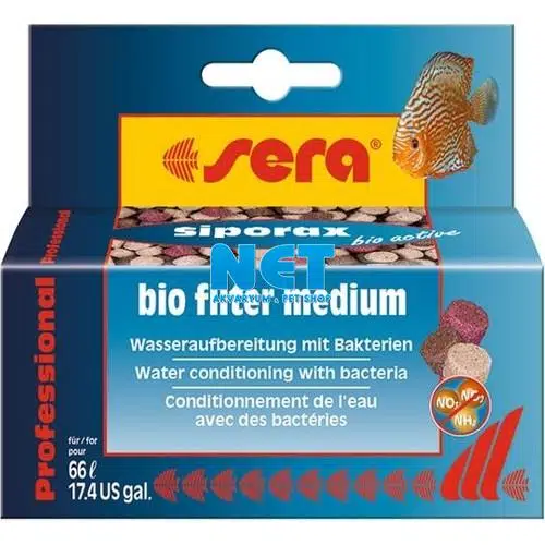Sera Siporax Bio Active Professional,Tatlı su akvaryumunda suyu düzenleyen eşsiz filtre malzemesidir.Eşsiz “kuru su koşullandırıcı” biyolojik filtrasyonun stabilize edilmesi ile etkili ve hızlı biçimde suyun kirleticilerinin temizlenerek koşullandırılmasını birleştirir.