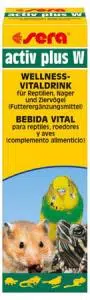 Sera Activ Plus, sürüngenler, küçük hayvanlar ve süs kuşları için Calamus kökü özütü içeren canlandırıcı ve sağlık kazandıran bir içecektir.