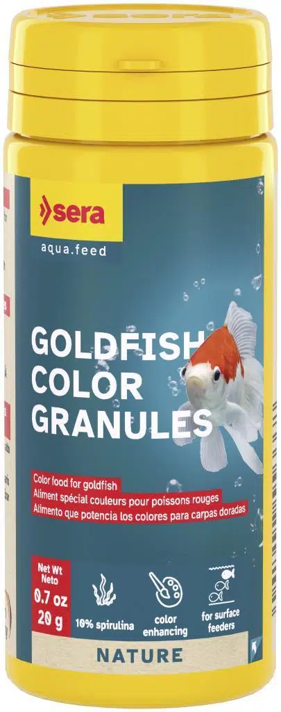 Goldfish Color Granules, daha büyük Japon balıkları, zor beğenen süslü türler ve diğer titiz soğuk su balıkları için boya ve koruyucu madde içermeyen granüllerden oluşan renk yemidir.