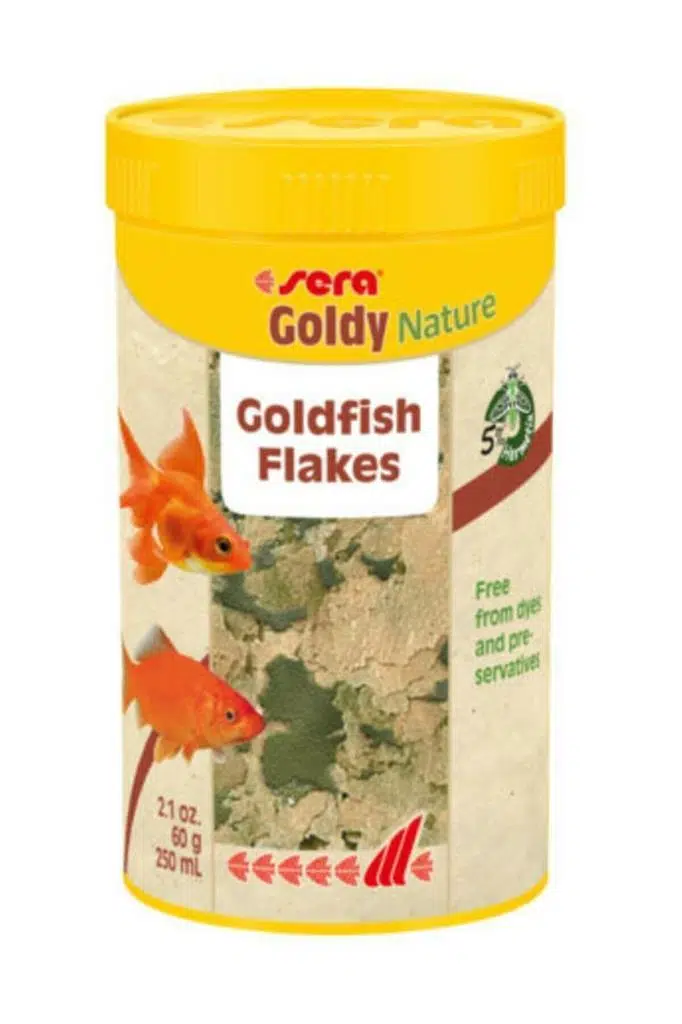 Sera Goldy Nature, boya ve koruyucu madde içermeyen ayrıca akvaryum, fanus ve havuzlarda yaşayabilen (japon balığı) soğuk su balıkları için doğal temel yemdir.