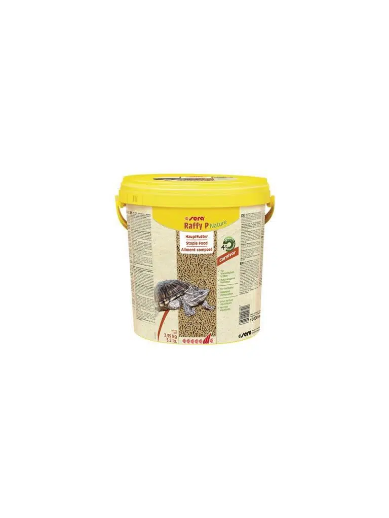 Sera Raffy P, etçil besin alması gereken su kaplumbağaları ve sürüngenler için özel olarak formüle edilmiş dengeli karbonhidrat ve yüksek oranda omega yağı asitleri içeren, protein yönünden zengin stick formda son derece kaliteli temel yemdir.