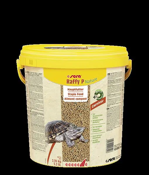 Sera Raffy P Nature Kaplumbağa Yemi, su kaplumbağaları için özenle üretilmiş granüllerden tasarlanmış yemdir. Hayvansal, seçilmiş sebzeli içerikli dengeli bileşim ve sindirilebilir proteinlerle üretilmiştir. Karbonhidratlar ve yüksek miktarda omega yağ asitleri ile karakterize edilir. Sağlıklı bir kabuk ve iskelet sistemi için gerekli kalsiyum miktarı artırılmış olarak bulunmaktadır.