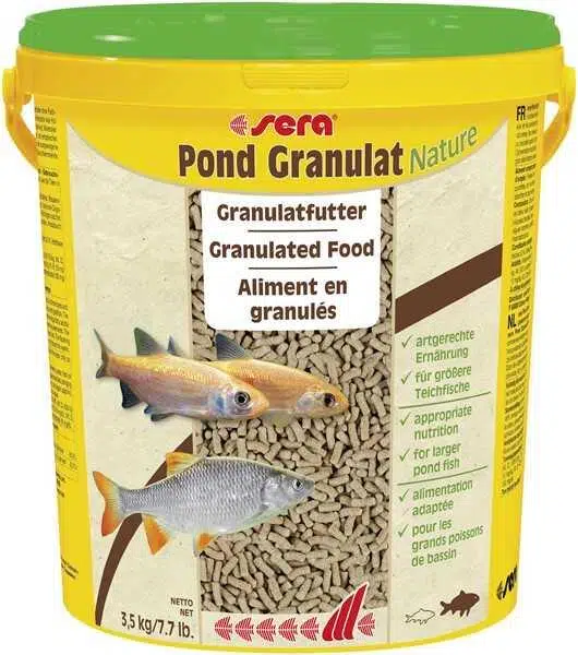 Sera Pond Granulat bahçe havuzlarında yer alan tüm süs balıkları için yüzer bir besin kaynağı olup, en yeni, bilimsel bulgulara uygum olarak üretilmiştir.Bileşiminde bulunan maddelerin titizlikle işlenmesi sonucunda, gerekli tüm besin maddelerini optimum düzeyde içermektedir.ileşimindeki vitamin katkıları ve doğal mineraller sayesinde bahçe havuzunuzdaki balıkların canlılığı ve doğal direnci desteklenmiş olur. Sindirimi kolay olan bu yem çubukları havuz mevsimine ideal bir başlangıç sağlar ve bütün bir yıl boyunca kullanılabilir.