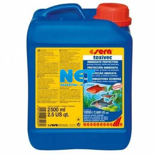 Sera Toxivec, yeni teknoloji QuickClean Formula içerir ve balıkları ve filtre bakterilerini tehdit eden tehlikeli ve zararlı maddeleri anında akvaryum suyundan arındırır.