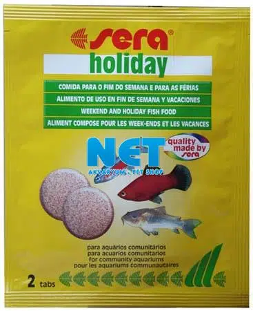 Örneğin tatil gibi uzun bir süre balıklarınızı besleyemeyeceğinizde sera tatil tablet yemi hayvanlara ideal yem desteğini sağlar. Yüksek oranda sıkıştırılmış besin parçacıklarından oluşan yem tabletleri çeşitli katmanlarda çözülerek bu sayede uzun süreli porsiyonlarda yenebilir. Bu tabletler kapsamlı besinler içerir ve plaster veya suyu gereksiz yere kirletecek diğer maddeler gibi dolgular bulunmaz.