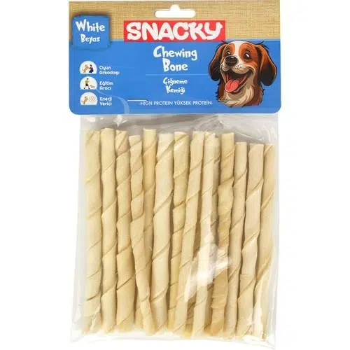 Ürün Adı: Snacky Beyaz Köpek Burgu Çubuk 15li *13cm *105g Skt :07/2026 Skt :07/2026
