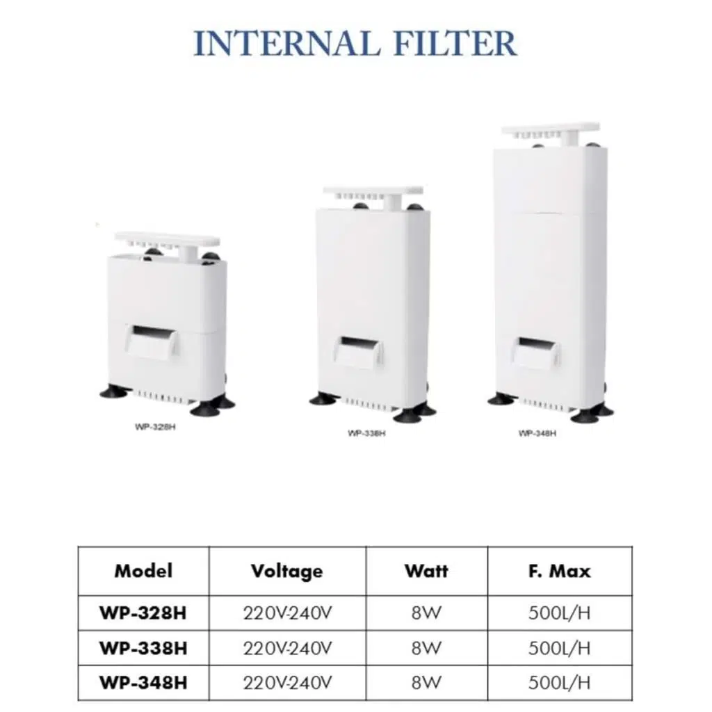 Sobo WP-338H Alçak Seviye Mini Askı Filtre 500L/S 8W Sobo Alçak Seviye Mini Askı Filtre, 80 ila 100 litre arası akvaryumlar için üretilmiş içerisinde akvaryuma içerisinde kullanılabilecek askı filtredir. Yüksek kaliteli ekolojik bir ortam yaratmak için oksijen dolaşımını da sağlayan filtre modelidir.Geniş filtre haznesi sayesinde dilediğin şekilde filtre malzemesi ilave edebilirsiniz. Sobo Alçak Seviye Askı Filtre, Vantuzlarıyla birlikte akvaryum içinde sabitlenebilir. Kaplumbağa gibi daha sığ suların olduğu akvaryumlar için idealdir. Bu aski filtre modeli akvaryum içerisinde çalışacak şekilde tasarlanmıştır. Ürün ölçüleri; * 14x6 Yükseklik 25 cm
