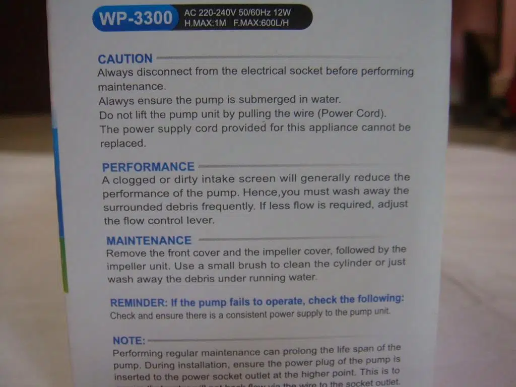 Ürün Adı: Sobo WP-3300 Akvaryum Kafa Motoru 12w 600 L/h