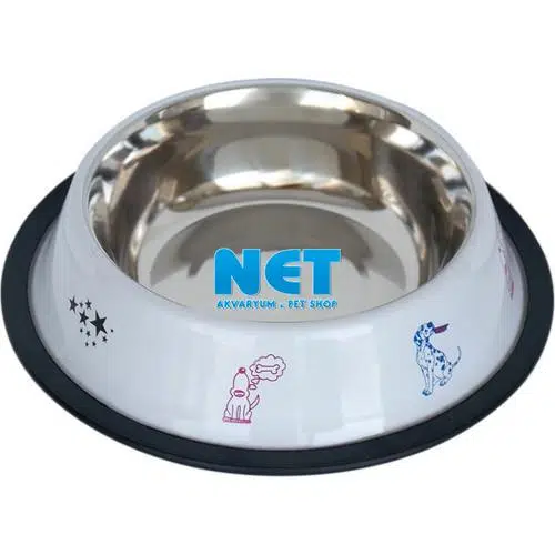 0.47 litre hacime sahip 21 cm taban çapına sahip kaydırmaz kauçuk tabanlı çelik & desenli mama kabı