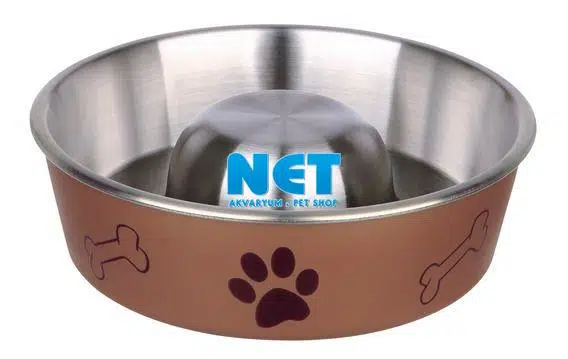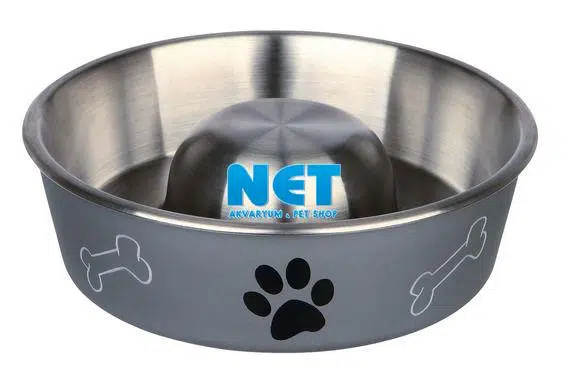Paslanmaz çelik yavaş besleme mama kabıdır. Dış yüzeyi plastik kaplıdır. Mama kabı merkezindeki çıkıntı sayesinde köpeğinizin mamayı hızlı şekilde yutması engellenmektedir. Kauçuk tabanı sayesinde kaymazdır.