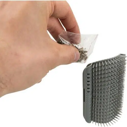 Uzun tüylü ve kısa tüylü kediler için uygun, ister düz bir alana ister köşeye monte edilebilir kedi fırçasıdır. Taranmaktan çok hoşlanmayan, kendi kendini taramayı, başka alanlara sürtünerek taranmayı seven kediler için ideal bir üründür. Esnek fırça yapısıyla çok kullanışlıdır. Paket içerisinde duvara monte etmek için gerekli malzeme ve kediotu çıkmaktadır. Ürün içerisine kediotu konularak kedinin fırçaya ilgi göstermesi ve sürtünerek kendini taraması sağlanır.