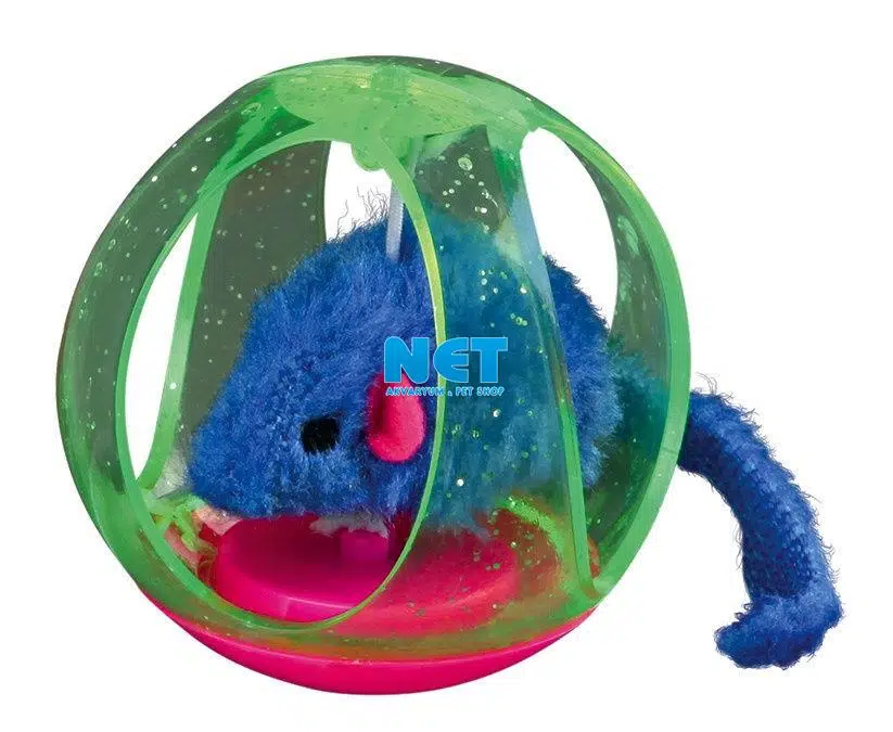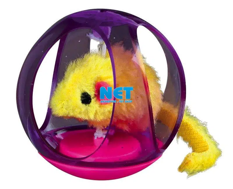 Kenarları açık plastik top içerisinde, top içine elastik iplerle bağlanmış peluş fare olan oyuncaktır. Ürün çeşitli renklerdedir. Top Çapı 6cm dir. Top içerisindeki fare elatik iplerle tam merkezde durudğu için kediniz fareye ulaşabilecek, dışarı çekmek isteyecek ama fare hareket ettikçe çok daha konsantre ve güzel zaman geçirecektir.