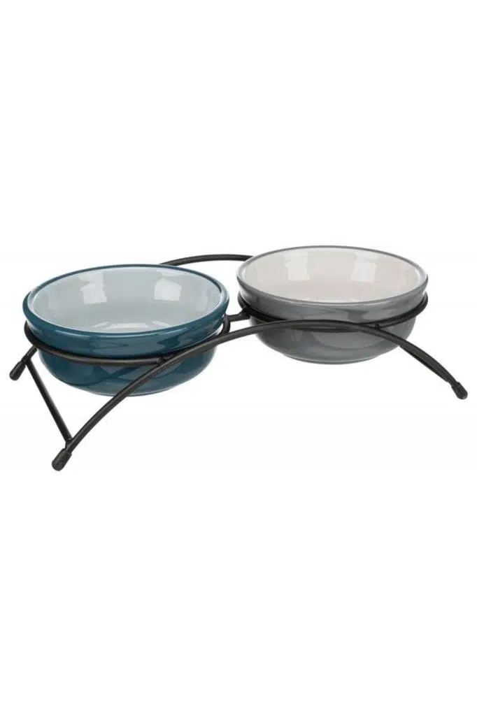 Trixie Köpek Seramik Mama Su Kabı Seti 2×0,25Lt2 adet 0,25 lt hacminde ve ø13 cm çapında petrol yeşili/gri seramik mama ve su kabı setidir. Fırın boyalı ve kaymaz ayaklı metal standı vardır.