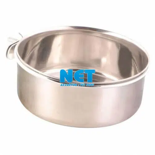 Muhabbet kuşları veya papağanlar için yemlik vb için kullanılabilecek paslanmaz çelik askılı kaptır. Düzenli yıkandığı zaman temizliği kolaydır ve bakteri tutmaz.
