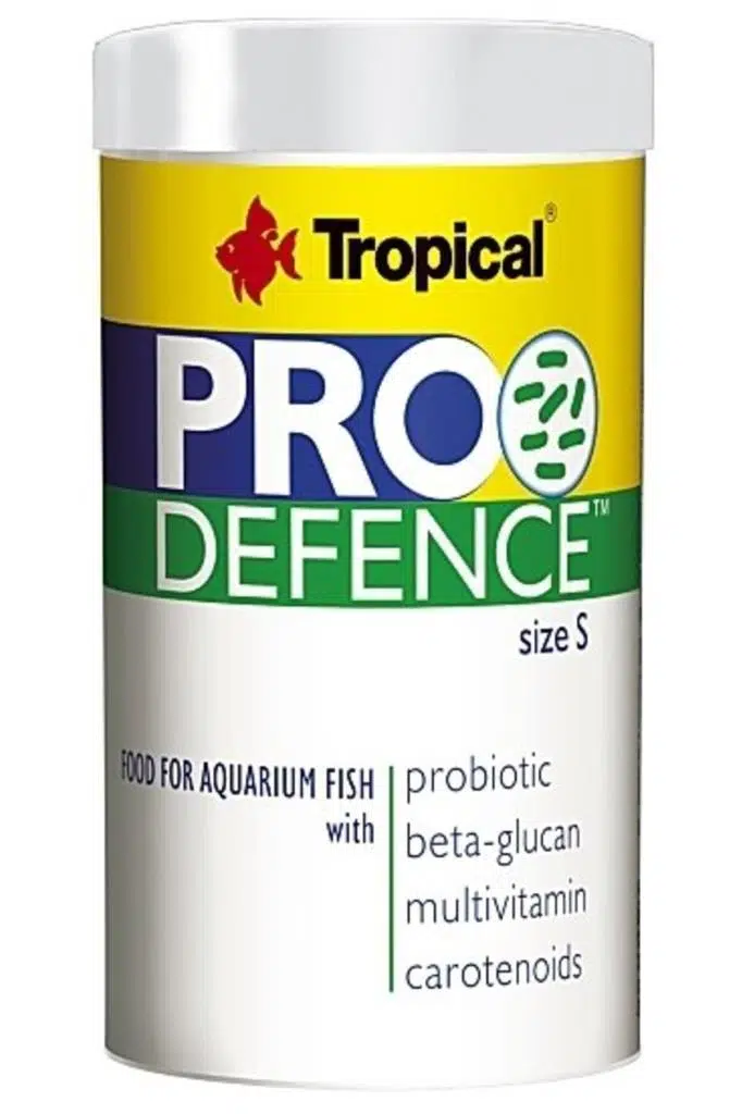 TROPİCAL Pro Defence Size S Granul 100ml / 52gr PROBİYOTİK KATKILI GRANÜL BALIK YEMİ Yetişkin balıkların günlük beslenmelerinde kullanılmak üzere yavaş batıcı granüller halinde tasarlanmış probiyotik katkılı yem Yeme eklenmiş olan probiyotikte bulunan canlı Bacillus subtilis bakteri endosporları bağırsaklardaki mikro florayı stabilize ederek yemden daha iyi yararlanılmasını sağlar; bu da suyun balık dışkısı nedeniyle daha az kirlenmesine yol açar Probiyotik, beta-glukan, vitaminler ve karotenoidler birlikte balıkların genel kondisyonlarının iyileştirilmesine ve bağışıklık sistemlerinin güçlendirilmesine güçlü etkilerde bulunurlar. Bu nedenle yemin hastalık, iyileşme ve adaptasyon dönemlerinde de kullanılması önerilmektedir Probiyotik balıkların doğurganlıklarını ve yavru balıkların hayatta kalma şanslarını artırmak suretiyle üremeyi olumlu etkilediği gibi taşıma, üreme, tür içi saldırganlık ve rekabet gibi nedenlerle ortaya çıkan stresin etkilerini azaltır İçeriğinde bol miktarda bulunan esansiyel aminoasitler bakımından zengin protein, balıkların sağlıklı bir şekilde büyüyüp gelişmelerini mümkün kılar