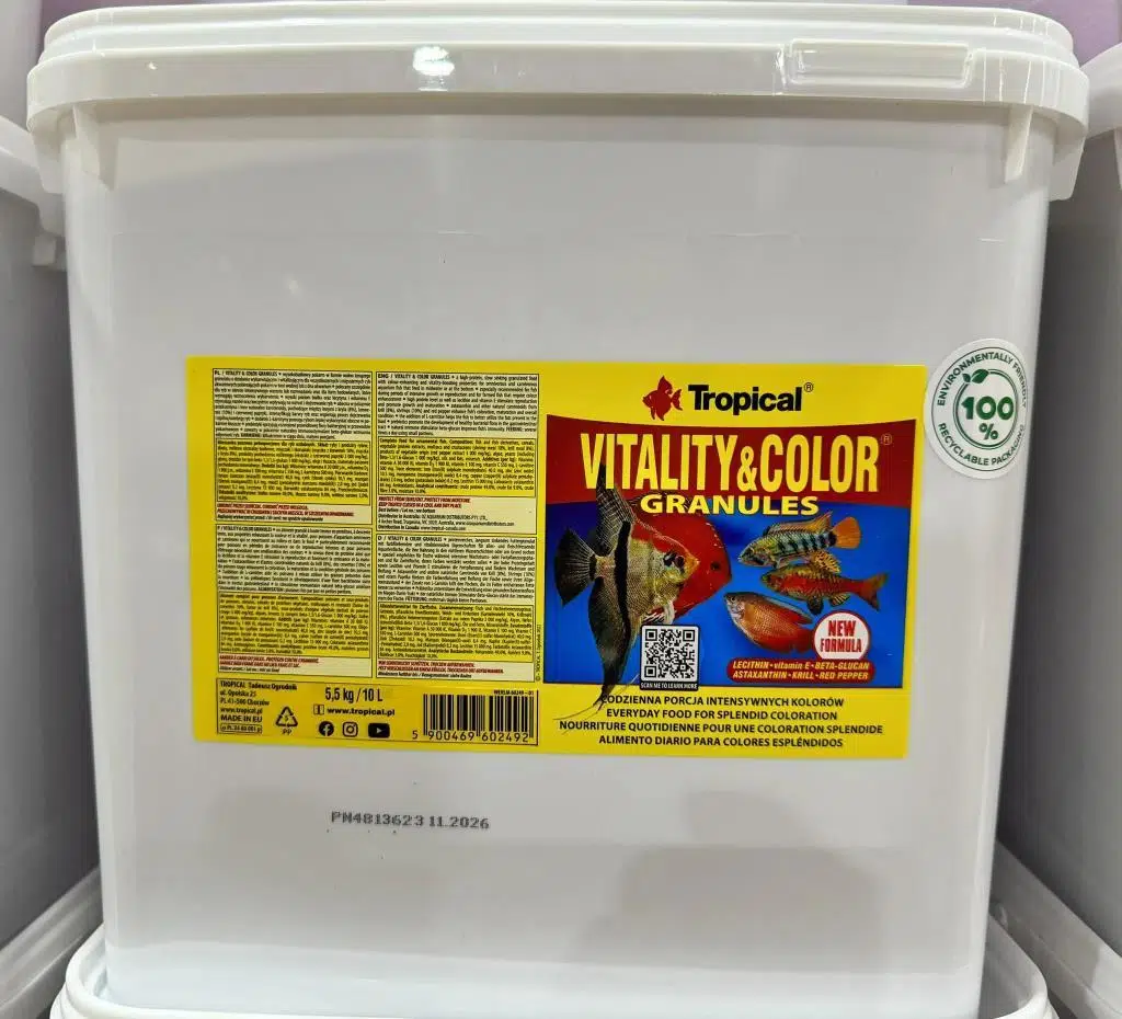 VITALITY & COLOR GRANULAT, balıkların yemdeki yağları daha iyi emmesine yardımcı olmak için balıkların yağ metabolizmasını kolaylaştıran L-Karnitin ile zenginleştirilmiştir.