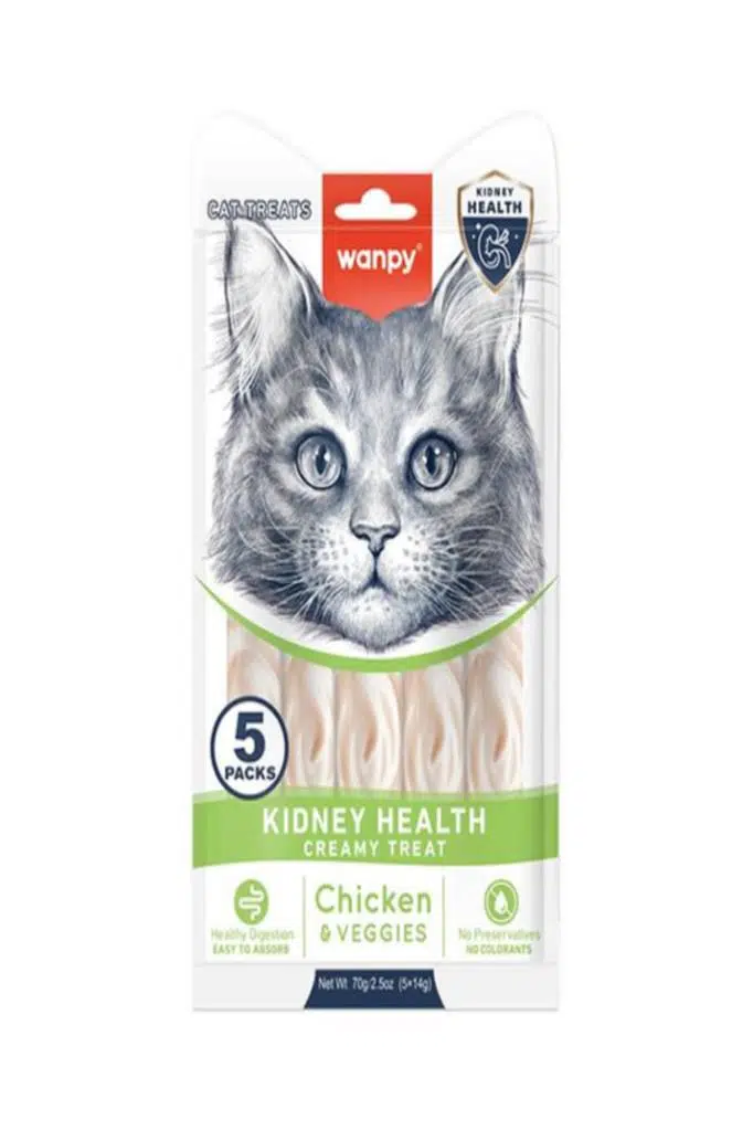 Ürün Adı: Wanpy Kidney Health Tavuk&Sebze Krema 5x14 gr Kedi Ödül Maması Skt:02/2027 Kedi Ödül Maması Skt:02/2027