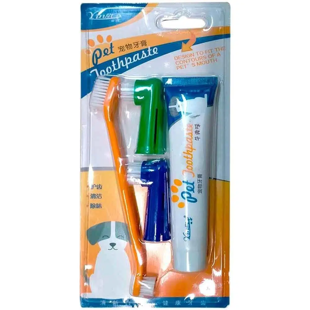 Yingte Köpek Diş Bakım Seti, sevimli dostlarınızın diş ve ağız bakımını sağlamak amacıyla özel olarak hazırlanmıştır. Nane aromalı diş macunu, iki adet parmak fırça ve çift taraflı diş fırçasından oluşan set oldukça pratik ve kullanışlıdır.